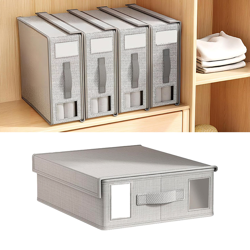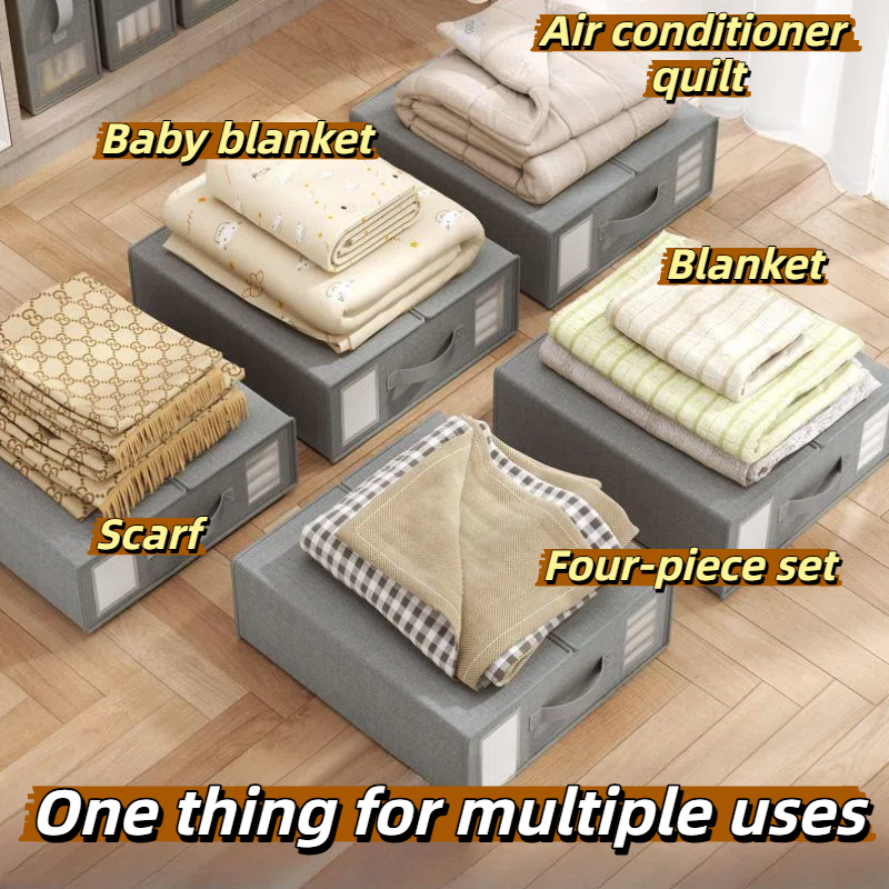 收纳盒-带手柄的床单存储组织器,可折叠的亚麻衣柜床单组织器,毯子、被单和毛巾的床单组织者,无纺布灰色款