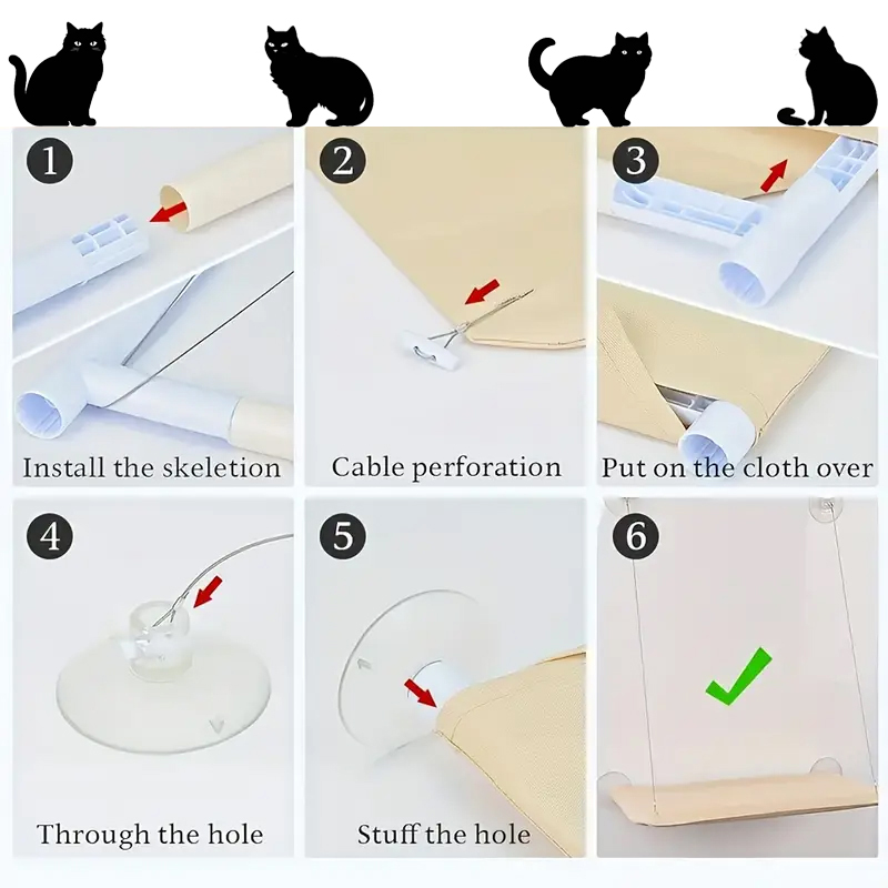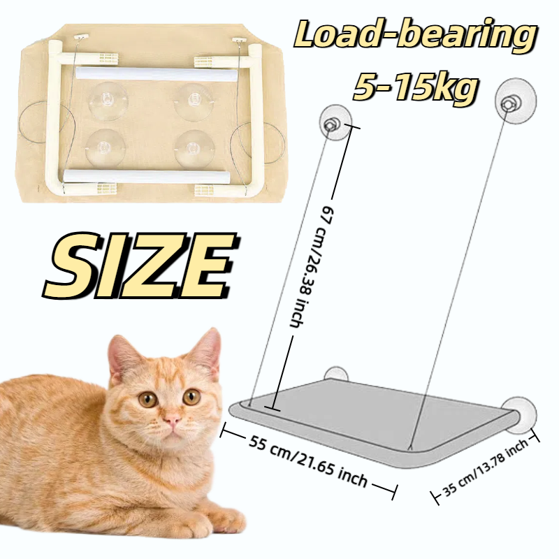 超大承重力耐磨猫窗吊床-栖息猫安全阳光床,带耐用的重型吸盘 室内猫的阳光窗座椅 睡眠空间节省窗户式猫床 /卡其色