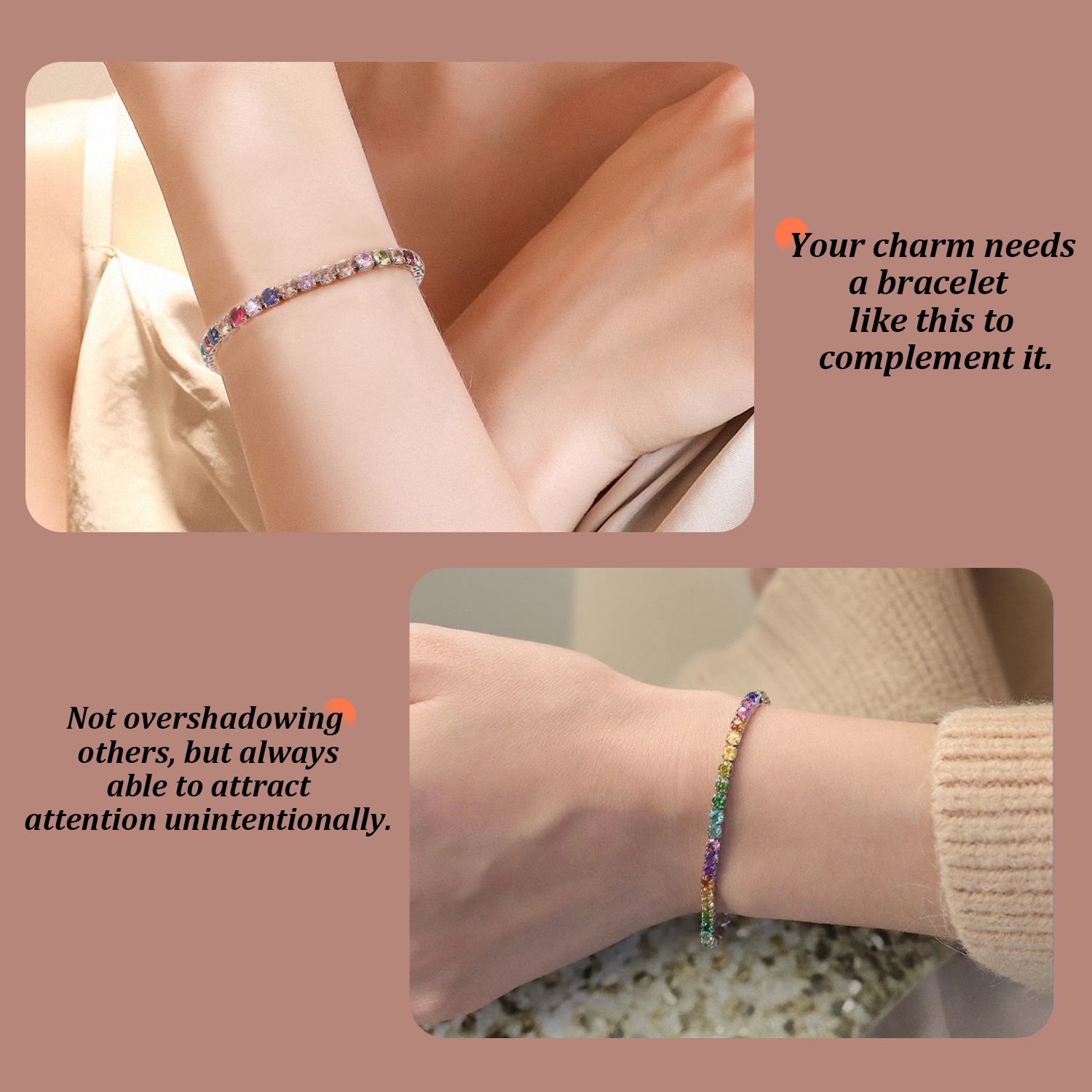 杂彩锆石手链,铜合金-锆石,7/8/9inch